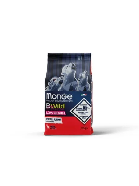 Monge Câini BWild Low Grain Toate Rasele Puppy & Junior – Cerb 2,5 kg